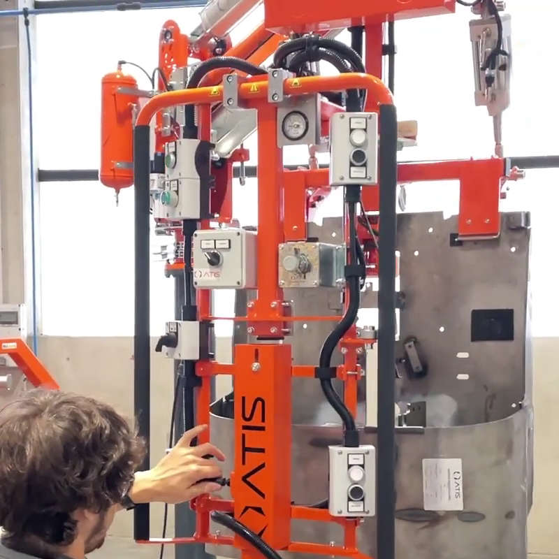 Popis: Pneumatický průmyslový manipulátor ATISmirus je navržen pro rychlou, bezpečnou a ergonomickou manipulaci se sudy. Pomocí manipulátoru odebírá obsluha sudy...