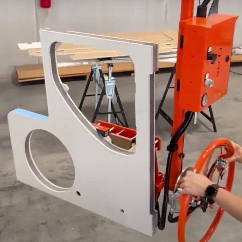 Průmyslové manipulátory pro zvedání dveří, přenos dveří a překlápění dveří. Manipulátory jsou vybaveny uchopovacím nástrojem s přísavkami. Technické řešení uchopovacího...